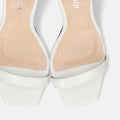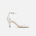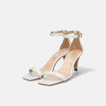 シンプルなストラップサンダルは、7cmヒールで大人スタイルに。トレンドのスクエアトゥと安定感が増すアンクルストラップが嬉しい美脚見せサンダルです。